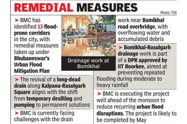 Bhubaneswar: The Bhubaneswar Municipal Corporation (BMC) has started the most critical phase of construction and restoration of a major stormwater drain between Rasulgarh and Kalpana Square, an area known for heavy waterlogging during monsoon.A nearly 200-metre-long stretch from the middle of the Bomikhal road overbridge to a mall in the locality has long remained a…