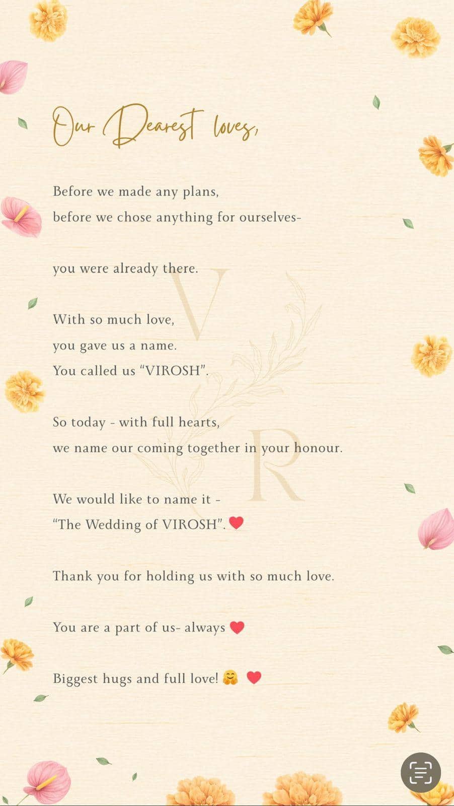 पोस्ट में आगे लिखा गया, ‘आज पूरे दिल से हम अपनी इस शुरुआत को आपके नाम करते हैं. हम इसे नाम देना चाहते हैं ‘द वेडिंग ऑफ VIROSH’. इतने प्यार से हमें थामे रखने के लिए धन्यवाद. आप हमेशा हमारा हिस्सा रहेंगे. ढेर सारा प्यार और हग्स!’